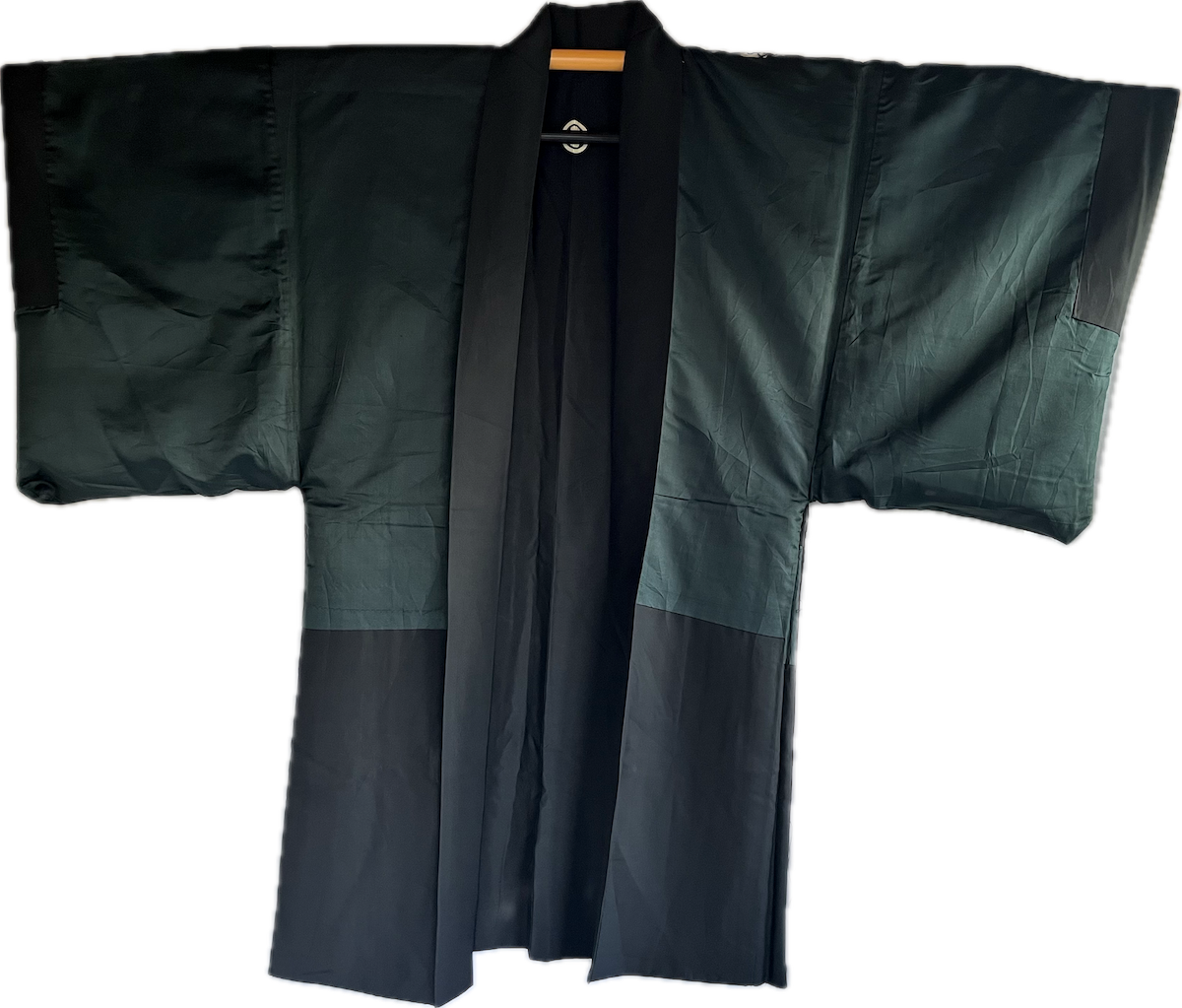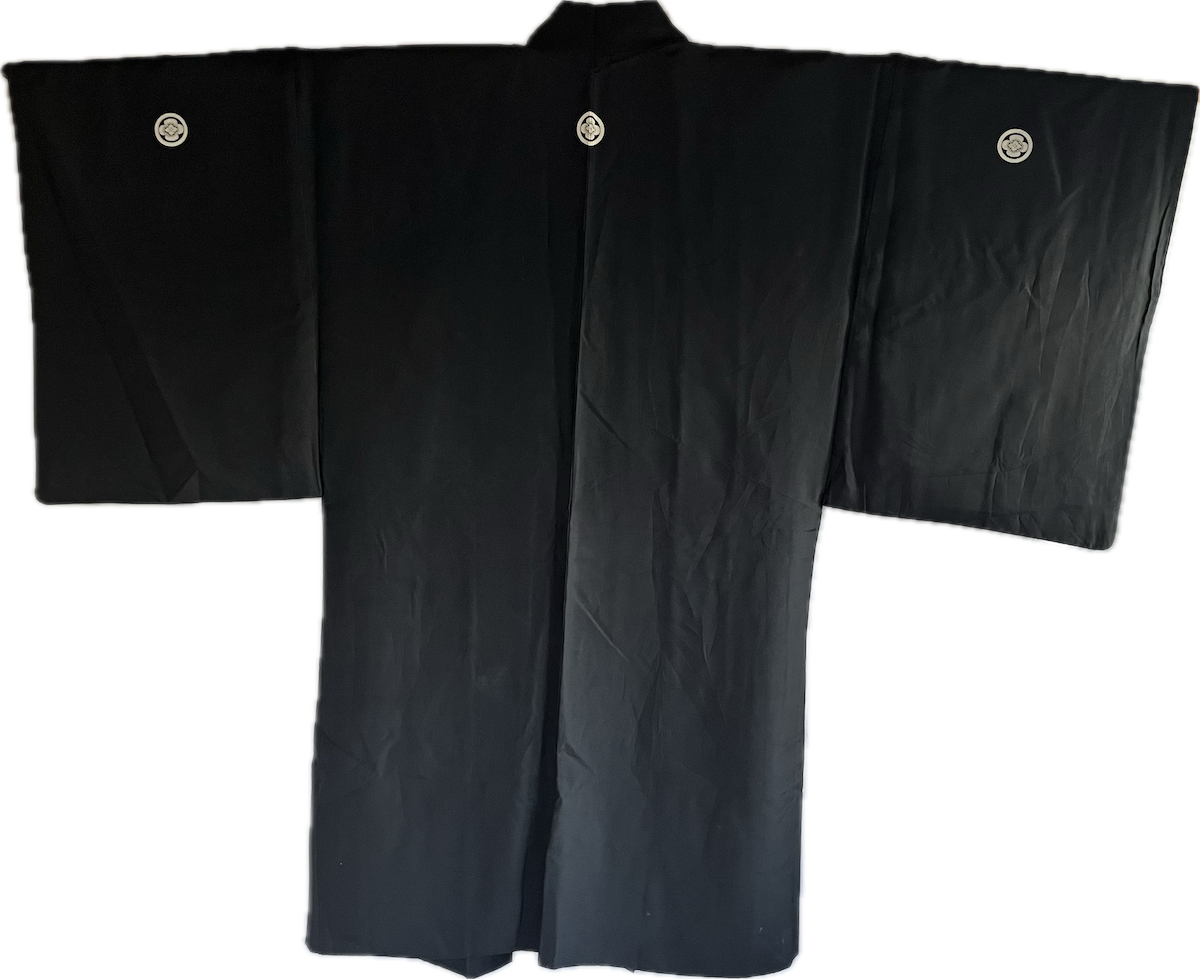 Ce haori japonais antique en soie noire est une pièce d’exception, ornée de
